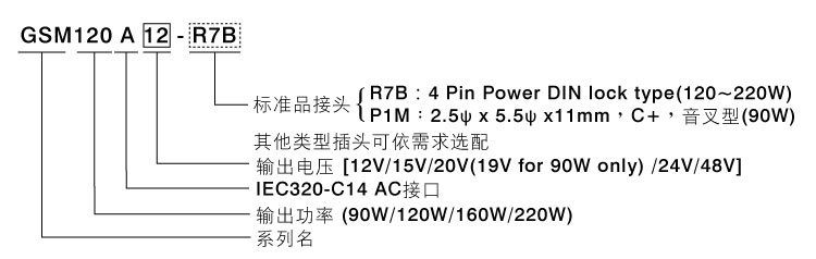 GSM90A/120A/160A/220A 系列 (90~220W Class I AC-DC绿色环保医疗用适配器 (Level VI))