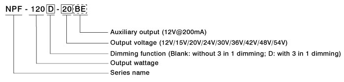 NPF-120D-BE 系列 (具辅助电源三合一调光型LED驱动器 (PFC)