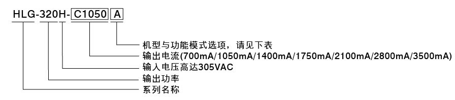 HLG-320H-C 系列 (320W具PFC高压恒流输出LED驱动器)